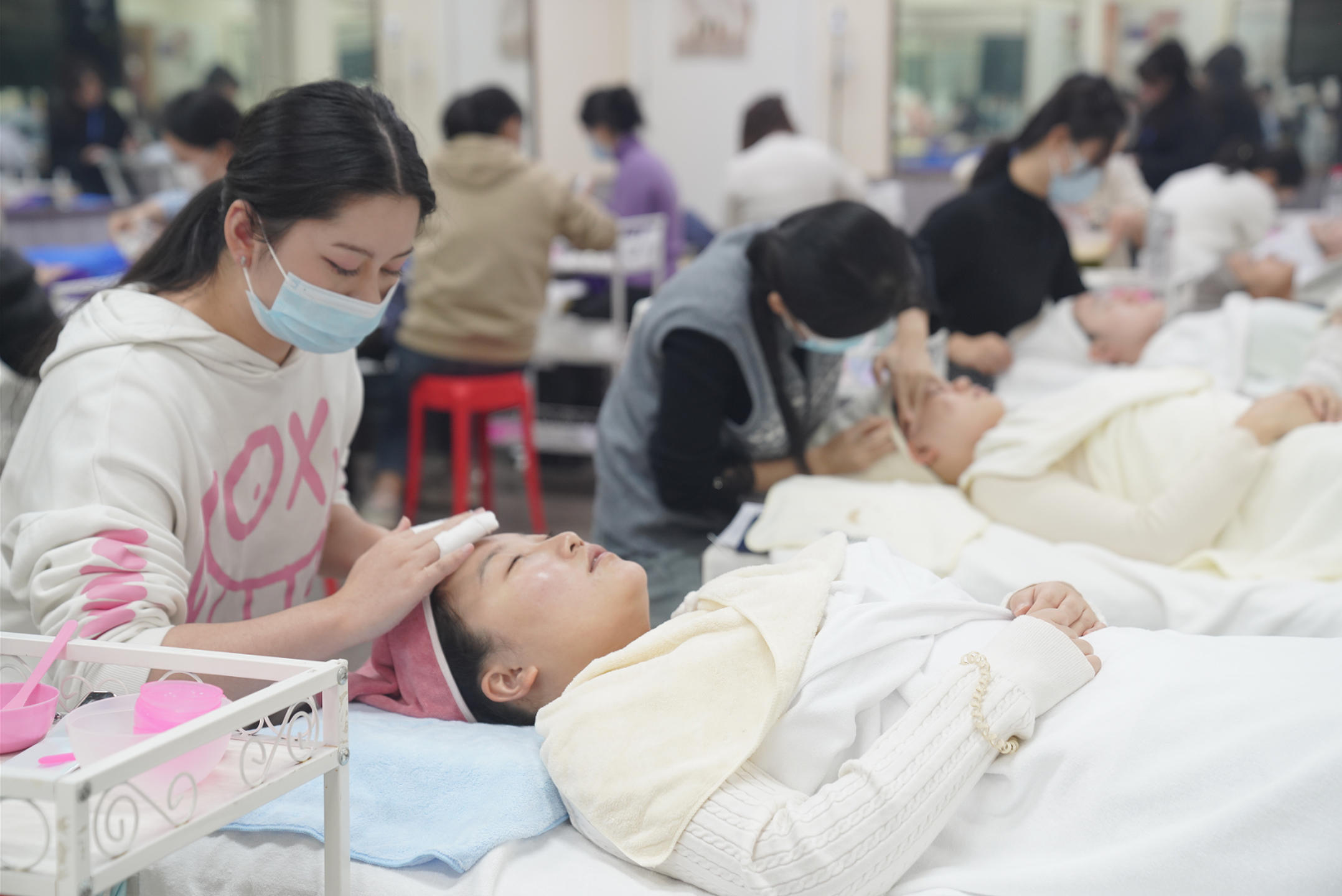 携手各大企业,设立定向培训班,签订人员定向培养计划及学员就业保障协议,课程最后与企业共同组织技能测评。培训结束后直接安排学员到目标单位就业,消除学员与用工单位之间的陌生感,实现人才供求的“速配”,提高学员的就业率和稳岗率。除此以外,针对有创业想法的学员还免费助力孵化,对其进行开店指导、项目推介评估、品牌策划等创业帮扶,或者直接与学校共同经营发展连锁美业实体店,以创业带动更多就业。